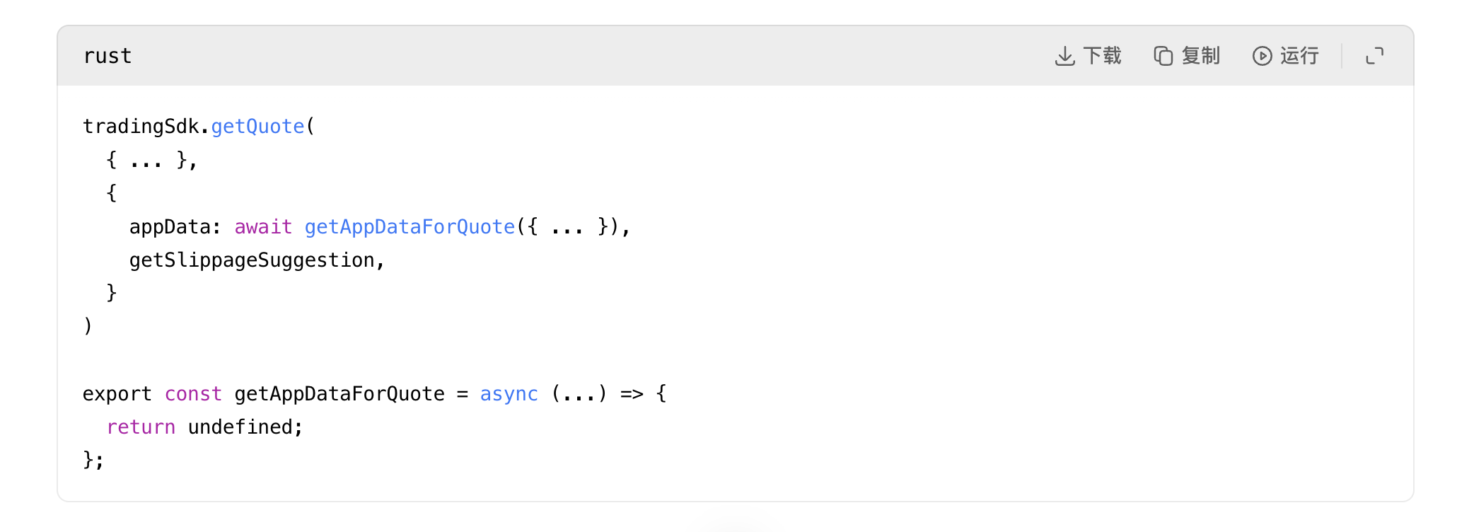 首个明显的代码异常点,出现在 Aave 界面的 CoW 适配器报价流程中:原本用于在请求报价时,附带适配器专属应用数据的函数,被直接强制禁用。