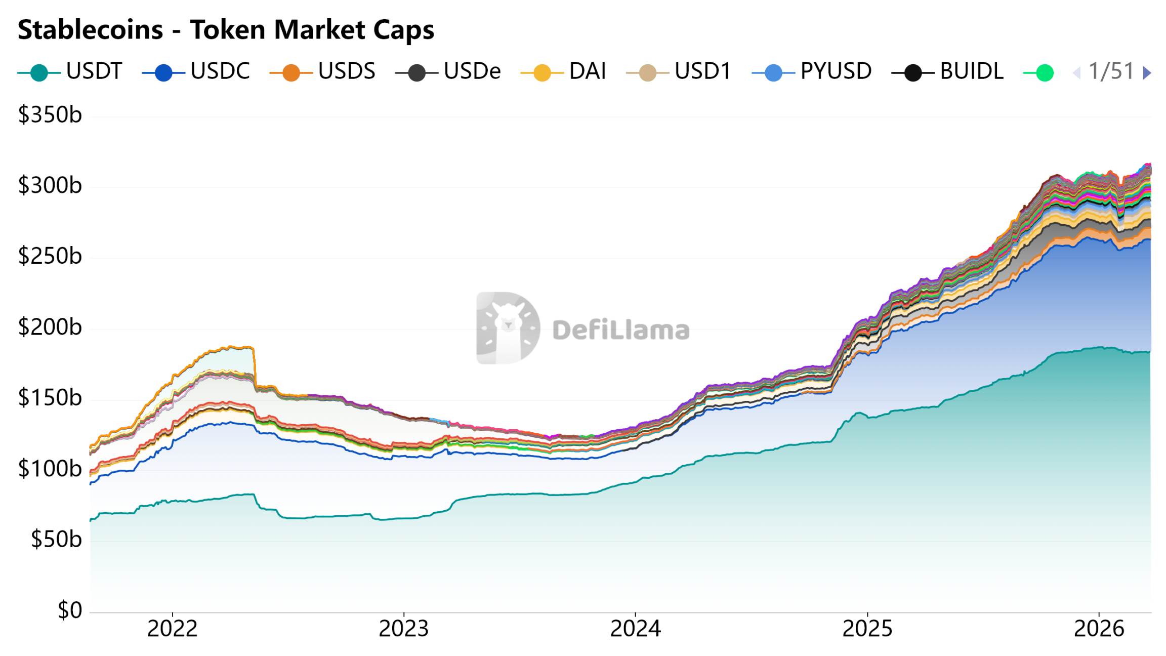 图源:DeFiLlama - Stablecoins