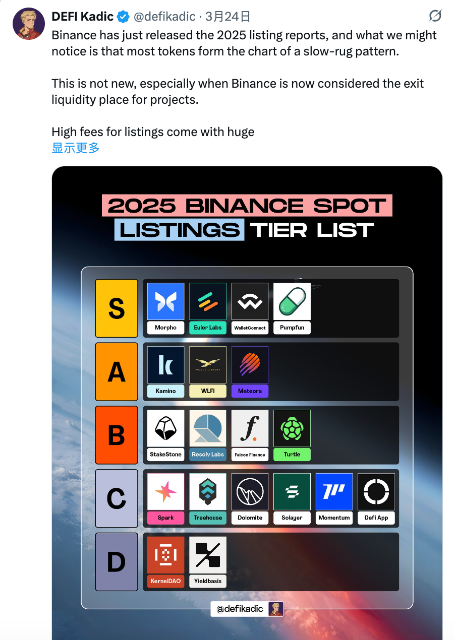 币安上线曾经是一个重要的里程碑。而现在,它通常被视为早期投资者获利了结的流动性事件。由于上线后存在巨大的抛压,许多交易员甚至将其称为“散户退出区”。