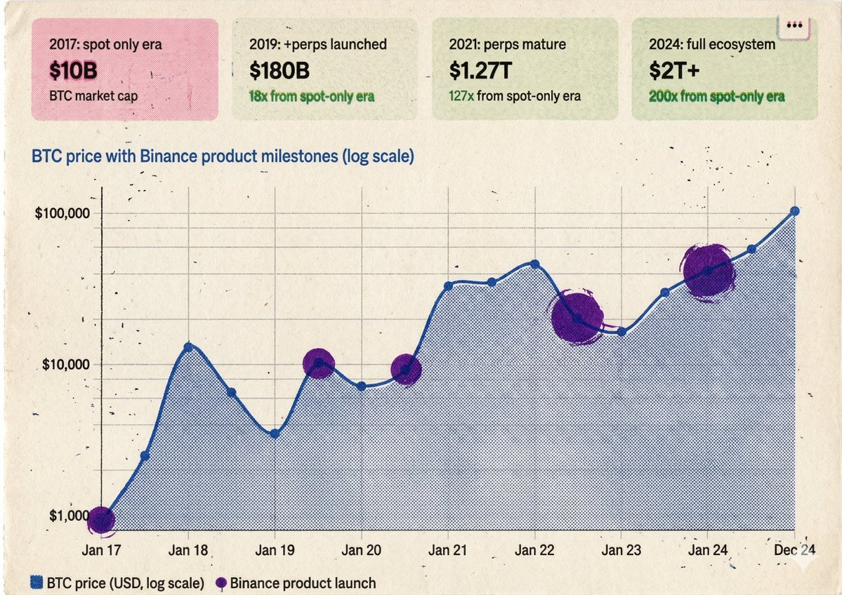 但四百年的历史也反复证明了同一件事:每一次这种恐惧被克服、做空权被引入市场的时候,市场没有崩溃——市场膨胀了。阿姆斯特丹变成了全球金融中心。华尔街从梧桐树变成了万亿资本市场。Binance成为了宇宙所。BTC从100亿美元变成了2万亿。