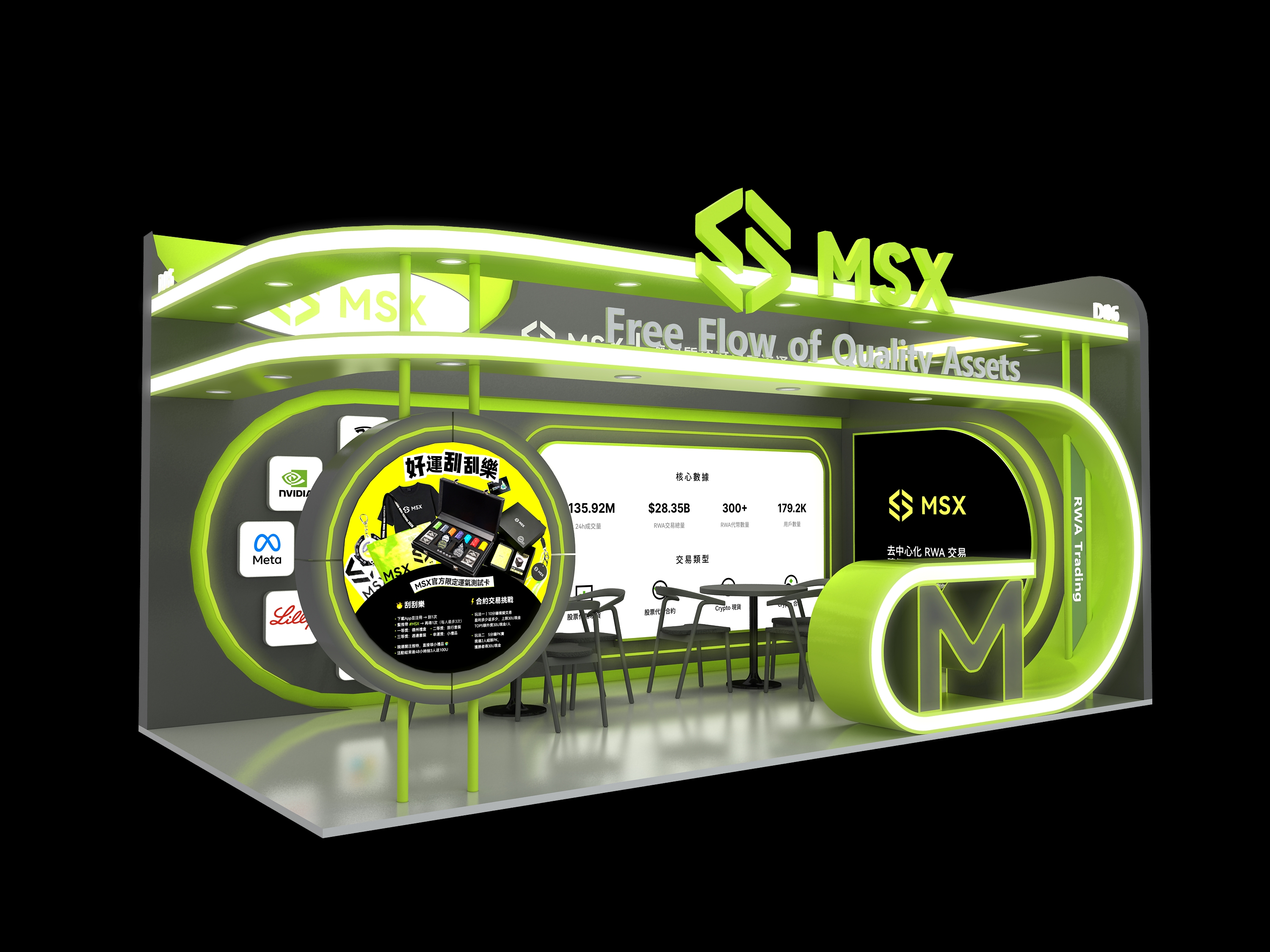 作为本届大会的白金赞助商,麦通 MSX 将在活动现场设有品牌展位,展区核心位置将集中展示平台业务版图与关键数据,来访者可更直观地了解 MSX 在代币化美股、RWA 交易与用户生态建设方面的整体布局。