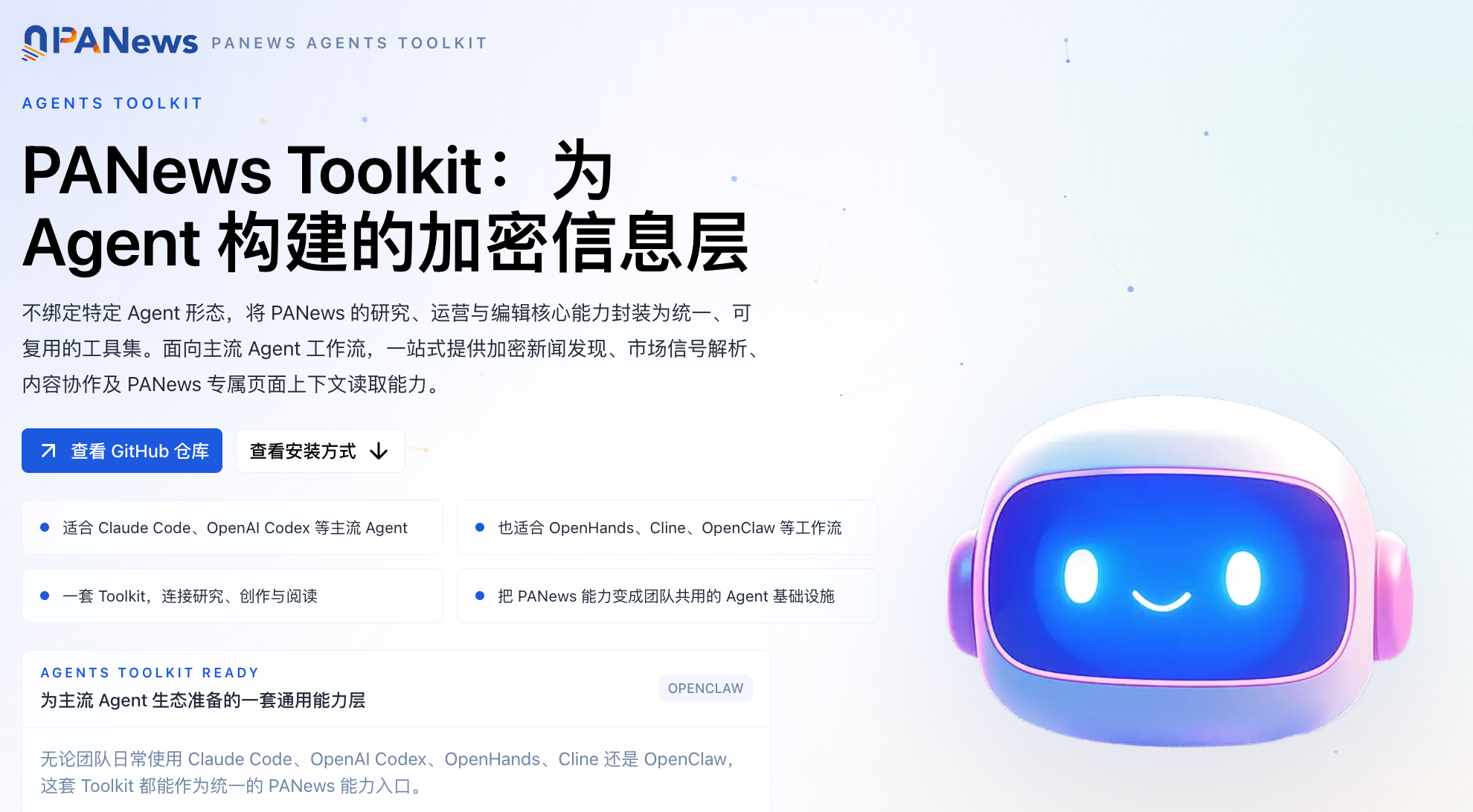 PANews 4月16日消息,PANews 宣布官方 Agents Toolkit 全面升级上线。相比 3 月份上线的初版 Skills,新版本覆盖 16 个核心使用场景、18 个 CLI 命令,能力边界从新闻检索扩展到预测市场、行业活动、社区话题等多个维度。