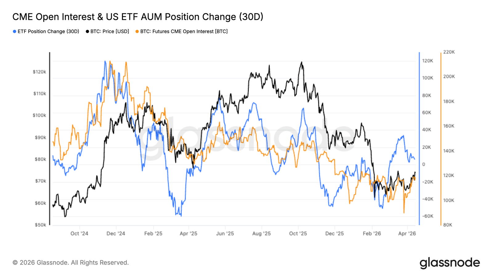 综合来看,数据表明机构投资者正开始重返市场,但其方式更具选择性且更为克制。芝加哥商品交易所持仓与 ETF 指数基金资金流入若出现更强劲且更持久的扩张,才将预示机构信心的更确定性回归。
