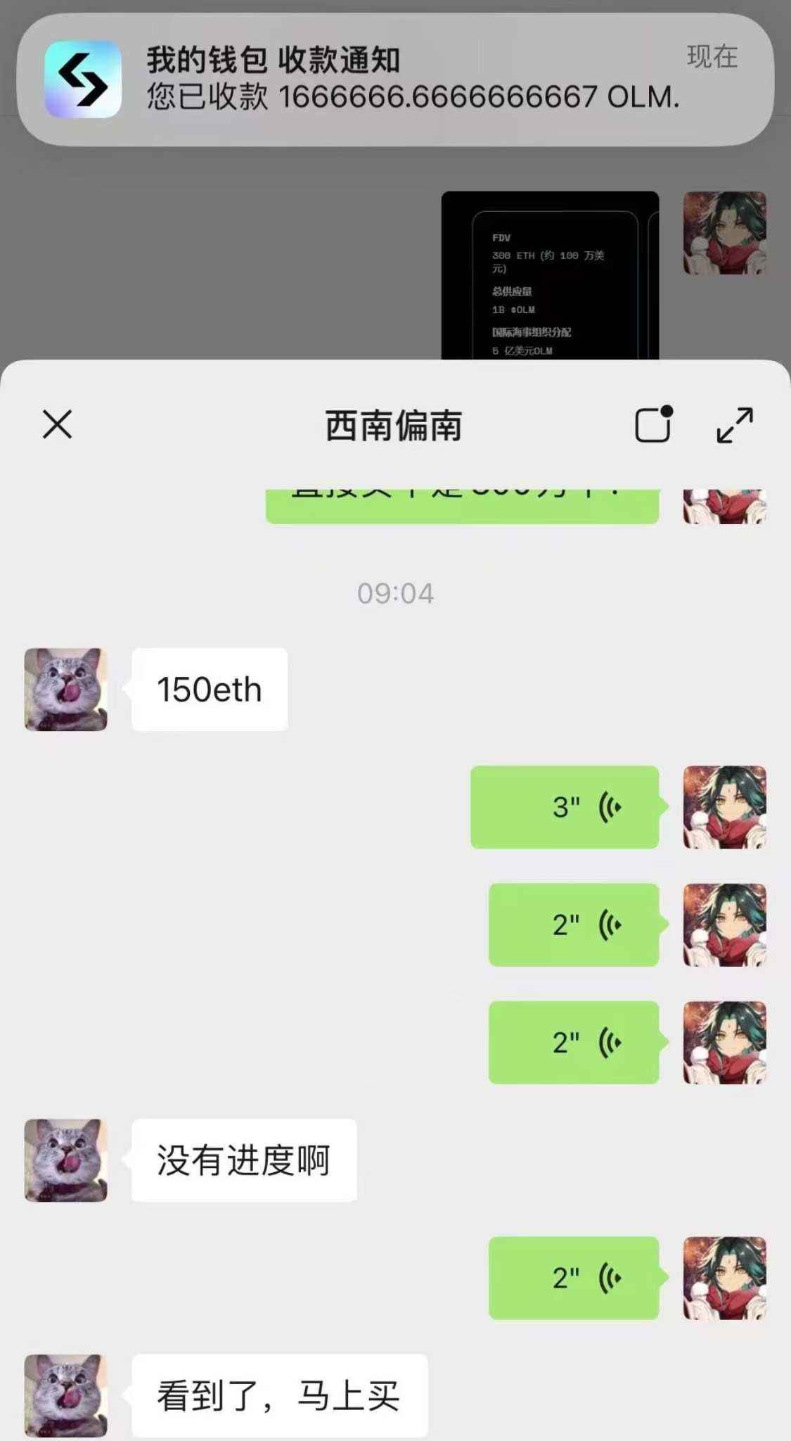 这个消息我是分享了2个伙伴,一个当天因为撸毛太累了睡早了(平时他都很晚睡,就那一天早睡,这件事也成为了他后来非常后悔的)于是我跟另一个伙伴一起扒了下这个OLM,我们也的确在链上找到了2天前就上线的一个同名的OLM ,我于是在群里分享了这个消息,很多人都说只是同名罢了,于是我跟那个小伙伴也就谨慎的买了一点仓位。