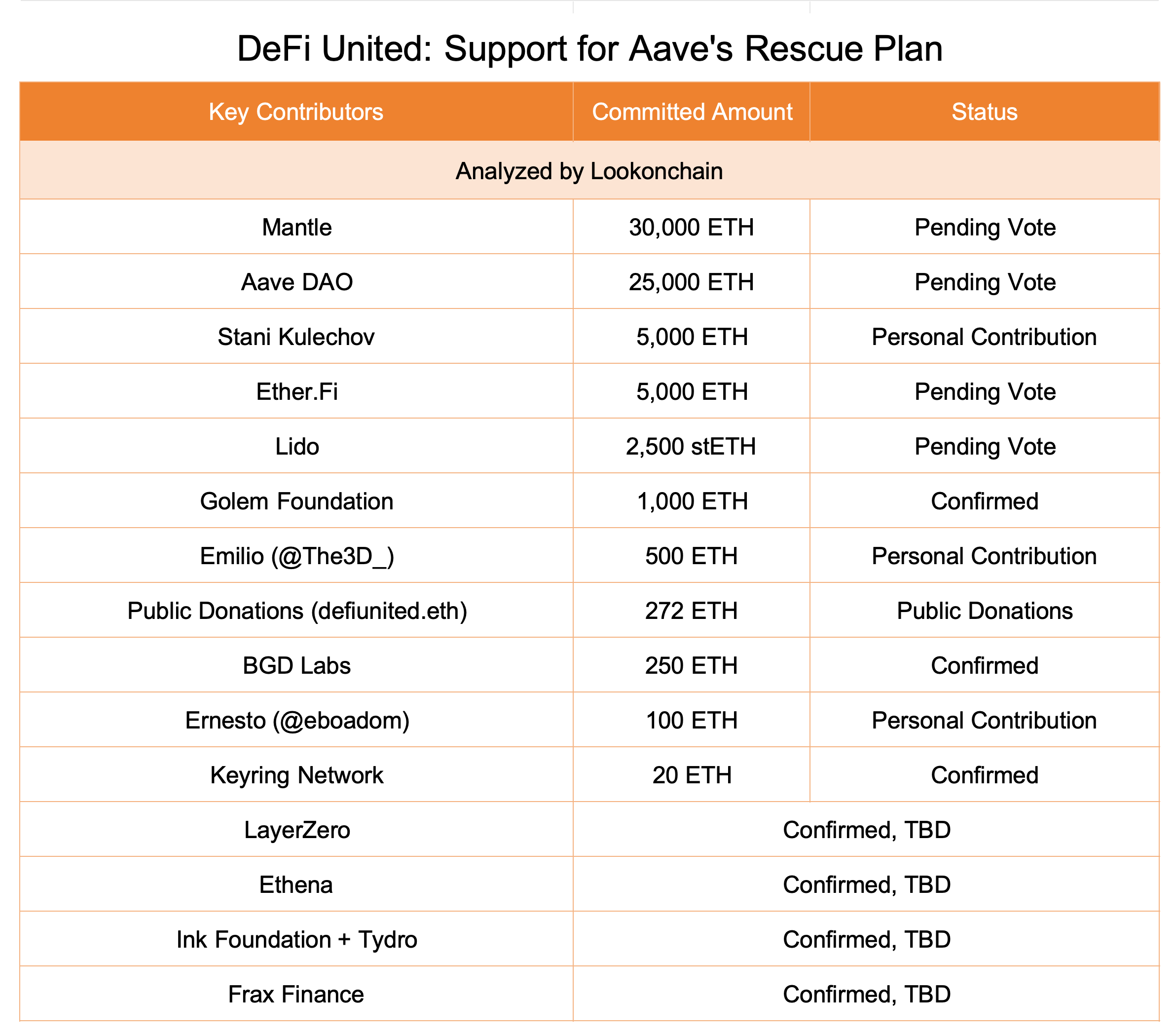 此前消息 ,作为这次 rsETH 事件中直接受到影响的借贷平台,Aave 出了 2.5 万枚 ETH (5775 万美元) 用于坏账弥补。 总共的坏账缺口是 75,081 枚 ETH,Aave 协调建立了 "DeFi United" 计划接收援助资金来弥补。